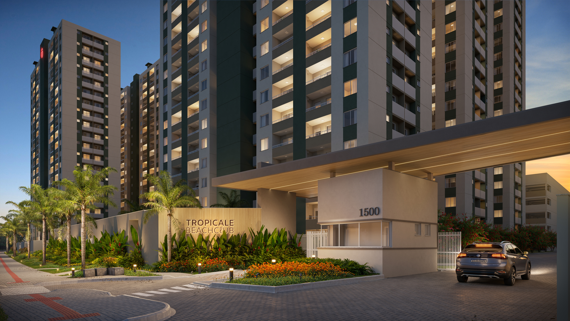 - Paisagismo que envolve e abraça o condomínio, com vegetações coloridas e tropicais, um verdadeiro parque linear.